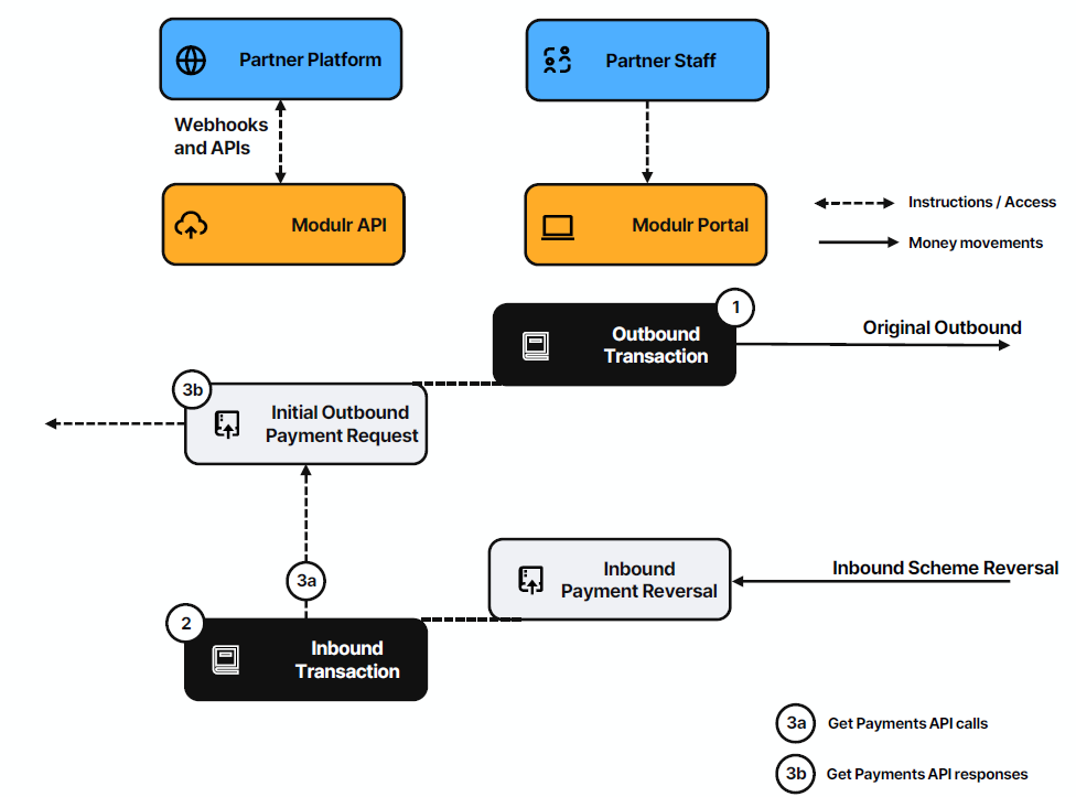 It is only for a Scheme Reversal (PO_REV), that a direct connection can be made to your payment out. Any of the other situations (2-4 listed above) will require a decision based on your investigations into the payer details, amount, description timing of payment out vs ‘new’ payment in, etc. Modulr can only provide the data available, we cannot signpost these for you when the inbound payment is not a formal scheme reversal.